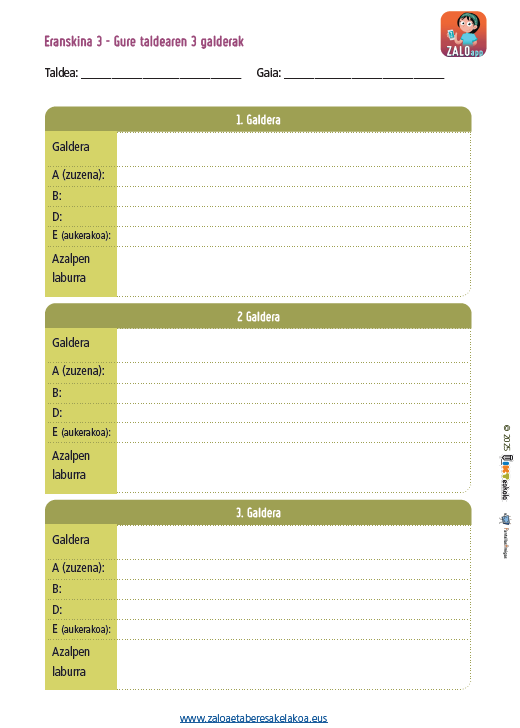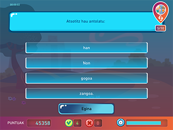 Lan didaktikoa osatzeko, ZaloApp bideojokoa garatu dugu gailu eramangarrietan zein nabigatzailean jokatzeko. Programa honetan lantzen diren edukien harira, gaika banandutako galdetegi azkarrak dira, non galdera-erantzun multzoak ebatzi behar diren hainbat modutan.